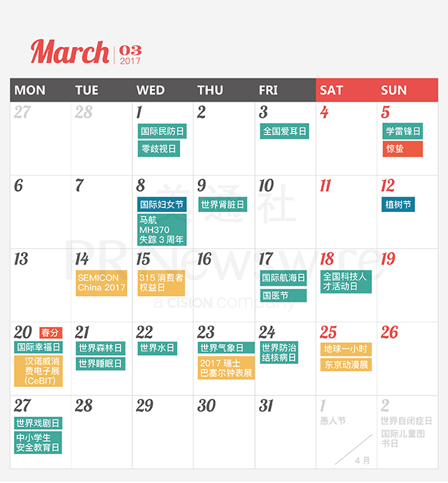 在線版2017新聞公關月歷也已上線:http://m.958m.com/resources/PRCalendar/
