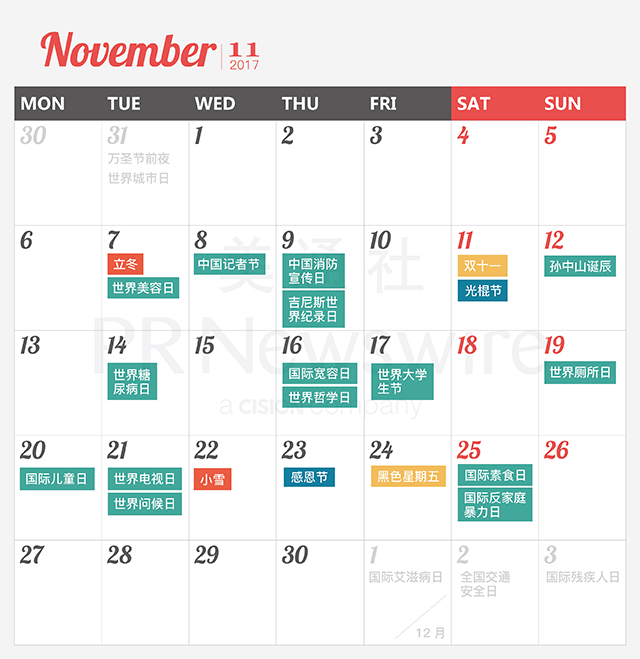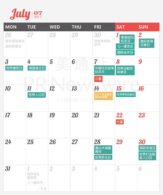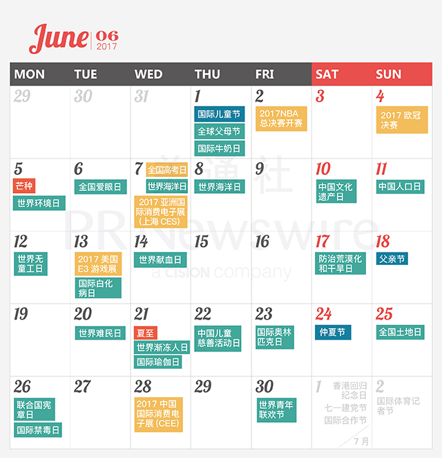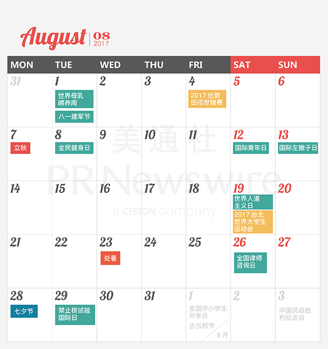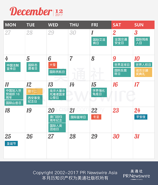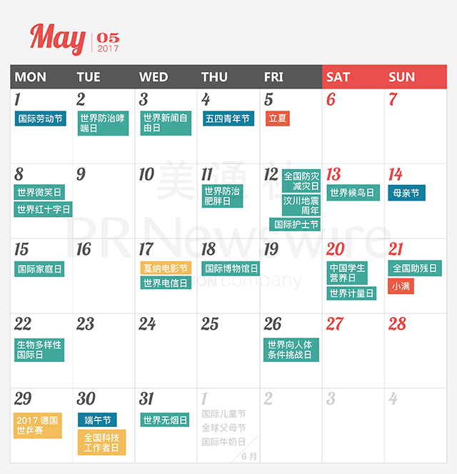 *美通社自2014年起開始推出新聞公關月歷,本月歷所有知識產權,包括創意、文字、圖片設計、印刷、原創插畫等版權歸美通社(PR Newswire)所有,轉載請聯絡美通社,標明原創出處。