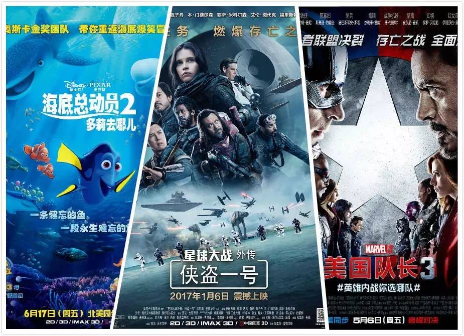 美國知名市場調(diào)研公司comScore的數(shù)據(jù)顯示, 2016年北美電影票房達(dá)到114億美元,較去年上升2個(gè)百分點(diǎn),創(chuàng)下歷史新高,這主要得益于去年多部大片的輪番上映。迪士尼成最大贏家,包攬了票房收入最高的前三名,其中《海底總動(dòng)員2:多莉去哪兒》(4.86億美元)、《星球大戰(zhàn)外傳:俠盜一號》(4.082億美元)、《美國隊(duì)長3》(4.080億美元)。票房收入前十的電影中有6部來自迪士尼。(美通社,2017年1月1日弗吉尼亞州雷斯頓)