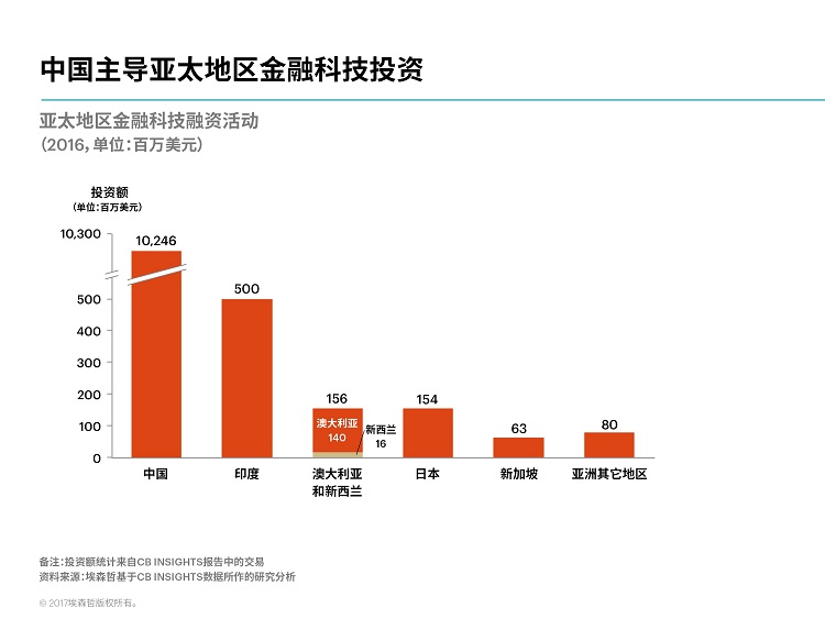 埃森哲研究發(fā)現(xiàn),在中國(guó)企業(yè)一系列重量級(jí)交易的帶動(dòng)下,2016年全球金融科技企業(yè)的投資攀升至232億美元,較上年度增長(zhǎng)10%。2016年亞太地區(qū)的金融科技融資規(guī)模實(shí)現(xiàn)翻番,首次超越北美,中國(guó)貢獻(xiàn)了亞太地區(qū)投資總額的九成。中國(guó)兩大電子商務(wù)巨頭阿里巴巴和京東成為了主要的金融科技投資者。其中規(guī)模最大的一筆交易發(fā)生在去年四月,阿里巴巴集團(tuán)旗下的螞蟻金服籌資45億美元。(美通社,2017年3月6日北京)