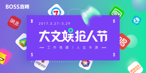3月27日,國內領先的移動互聯網招聘平臺BOSS直聘正式上線“大文娛搶人節”,聚齊了包括騰訊互娛、阿里影業、愛奇藝等BAT系明星公司,以及米果文化、快看漫畫和秒拍等數十家泛文娛行業一線公司。BOSS直聘人才大數據顯示,泛娛樂行業的人才需求在近三年中年均增長20.1%,特別是對設計和內容類人才需求極高,占到全行業人才需求的一半。游戲和視頻直播類行業對移動端人才爭搶空前激烈,薪資水漲船高。(美通社,2017年3月27日北京)