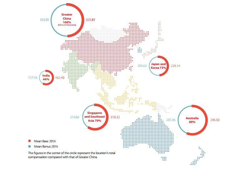 海德思哲的第四版年度《亞太地區私人資本薪酬調查》發現,亞太地區私人資本專業人士的薪酬上漲趨勢在2016年有所放緩。近三分之二的受訪者表示,他們的基本薪酬在2016年沒有發生變化。與亞太地區其他地方相比,中國的薪酬水平最高。中國內地和香港的私人資本專業人士在整個亞太地區中擁有最高的薪酬總額,他們的基本薪酬平均值為325,890美元,獎金平均值為343,050美元,而印度專業人士的薪酬水平只能達到中國同行的44%。(美通社,2017年4月6日香港)