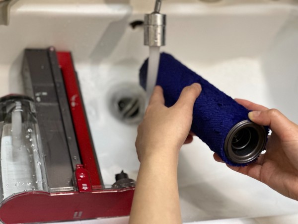 面對用戶這一困擾,戴森也做出了自己的嘗試。通過配件上的“一鍵拆卸”功能,用戶可以輕松拆卸零部件,中間的污水箱、甚至馬達都能單獨拿出來沖洗,整個配件清洗下來,就像洗了個馬克杯一樣方便。