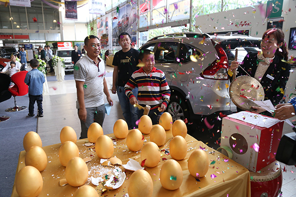 在此次活動中,實田4S店為所有成功購車的顧客準備了砸金蛋活動,只要是報名參與本次活動并成功購車的的網友均能從活動中收獲各種精美的禮品,到場顧客參與程度異常火爆。
