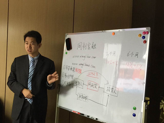 2015年1月24日,網利寶與投資人理財交流會在南京金奧費爾蒙酒店成功舉辦。網利寶南京地區十余位投資人與公司高管面對面交流。網利金融執行總經理蔡景鐘、網利寶金融產品總監徐海通分別介紹了公司基本情況、發展歷程、產品結構、風控措施、并解答投資者疑問、介紹公司下一步的發展規劃。見面會受到投資人的認可;投資人均表示對網利寶的理財產品更加有信心。