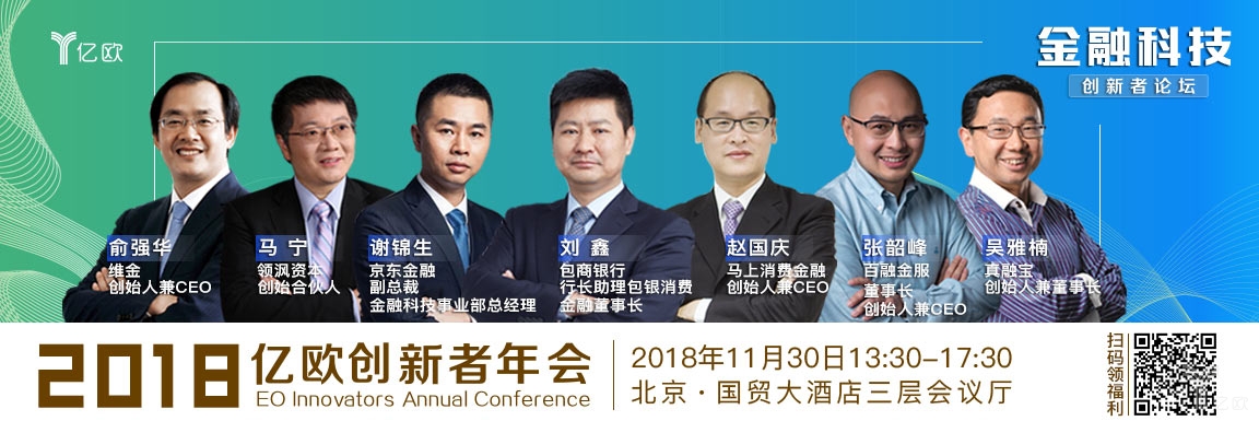 2018年11月30日,北京國貿大酒店,2018億歐創新者年會【金融科技創新者論壇】火熱報名中:搶票鏈接https://www.iyiou.com/post/ad/id/708