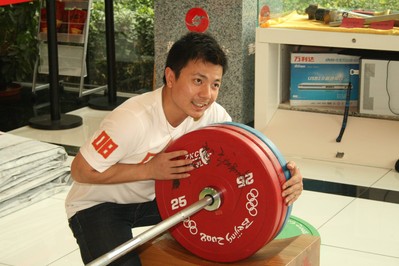 北京奧運會男子舉重項目冠軍用杠鈴
