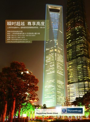 44臺性能卓越的蒂森克虜伯電梯安裝于上海環球金融中心內