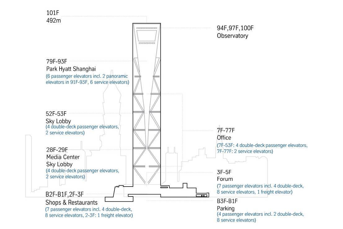 圖1:上海環球金融中心蒂森克虜伯電梯分布示意圖