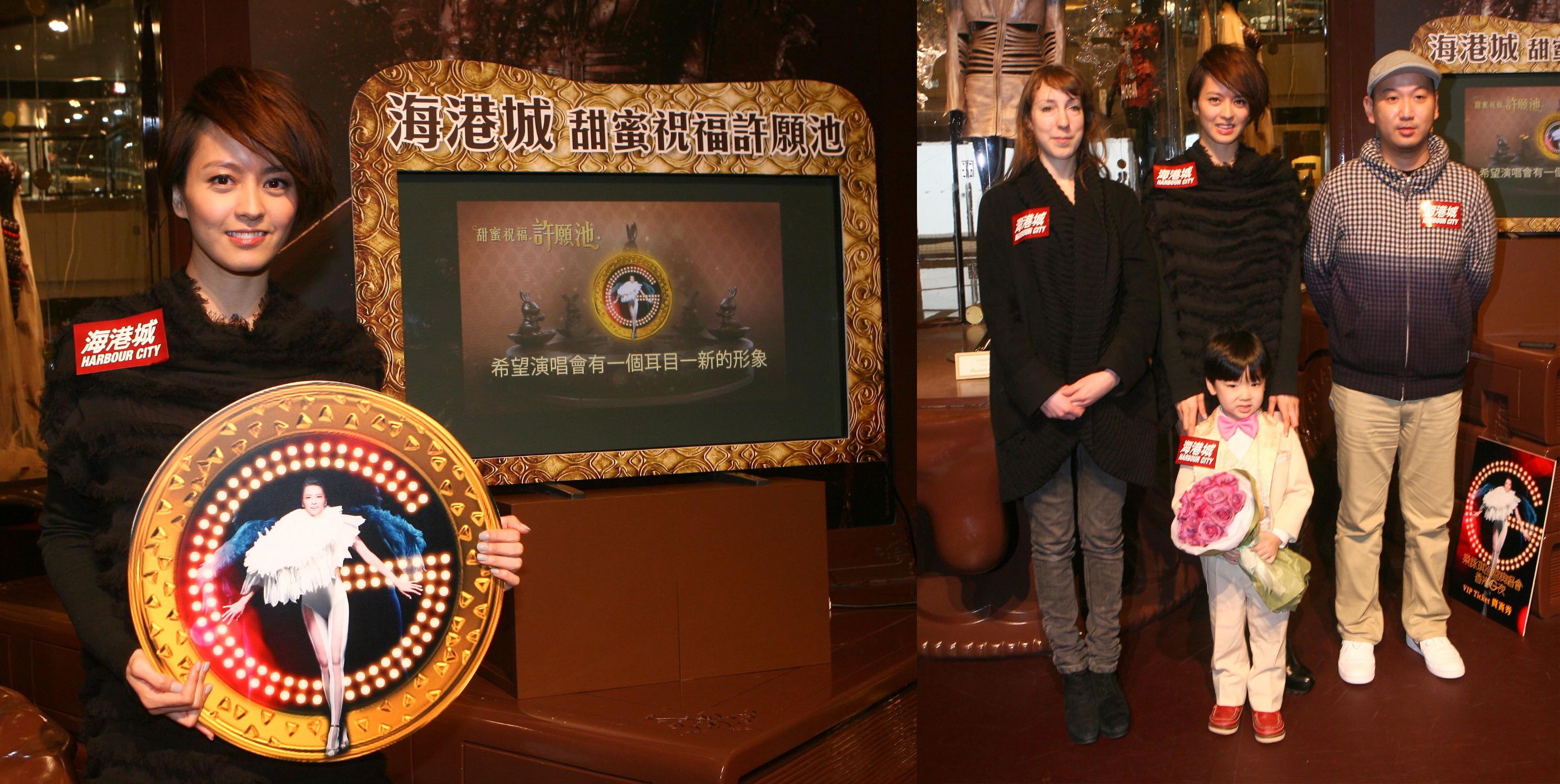 為隆重其事,海港城特別于2011年2月14日(星期一) 在海港城港威商場大堂I舉行“海港城‘甜蜜祝福許愿池’揭幕活動(dòng)”,特別請來 梁詠琪(Gigi) 出席為海港城“甜蜜祝福許愿池”揭幕,成為首位許愿嘉賓,并暢談情人節(jié)趣事、兔年愿望、演唱會(huì)主題內(nèi)容及籌備情況等。另外,遠(yuǎn)道而來的荷蘭星級(jí)時(shí)裝設(shè)計(jì)師Iris van Herpen,又會(huì)與梁詠琪互相交流衣著心得,并為她即將舉行的演唱會(huì)給予專業(yè)服裝意見。而梁詠琪為表示感謝,亦會(huì)送贈(zèng)特別的VIP演唱會(huì)門票予Iris。
