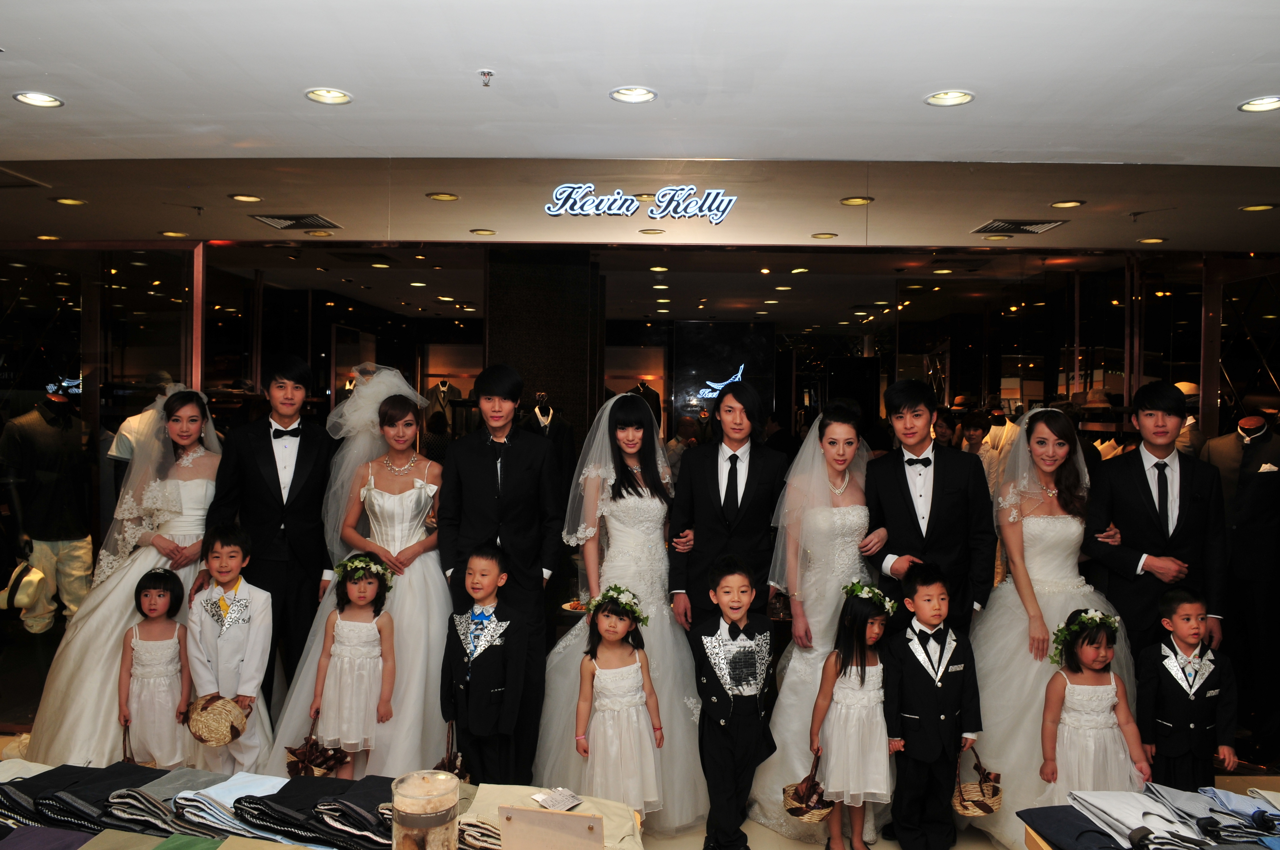 在萬眾期待中,凱文凱利新顏亮相:四對新人簇擁著“王子”與“準王妃”自商場門口徐徐走來,令人留下深刻印象的不僅僅是身著準王妃同款婚紗的新娘,新郎儼然是本場活動的重磅主角。為了充分展示凱文凱利卓越的量身定制產品,曾參與北京奧運開幕式導演禮服高級定制、60大慶國家領導服裝量制以及多國首腦訪華服裝量制等多次國家要事活動的品牌首席設計師為本場活動精心設計了四位新郎及“威廉王子”的禮服。歐式剪裁的流暢處理下,進口原材演繹出款款精致典雅的定制禮服。為了更契合中國顧客的需求,其中兩款特別設計了頗具東方美感的立領設計,合體的剪裁造就與身體緊湊有致的完美貼合度,呈現出令人眼前一亮的視覺效果。