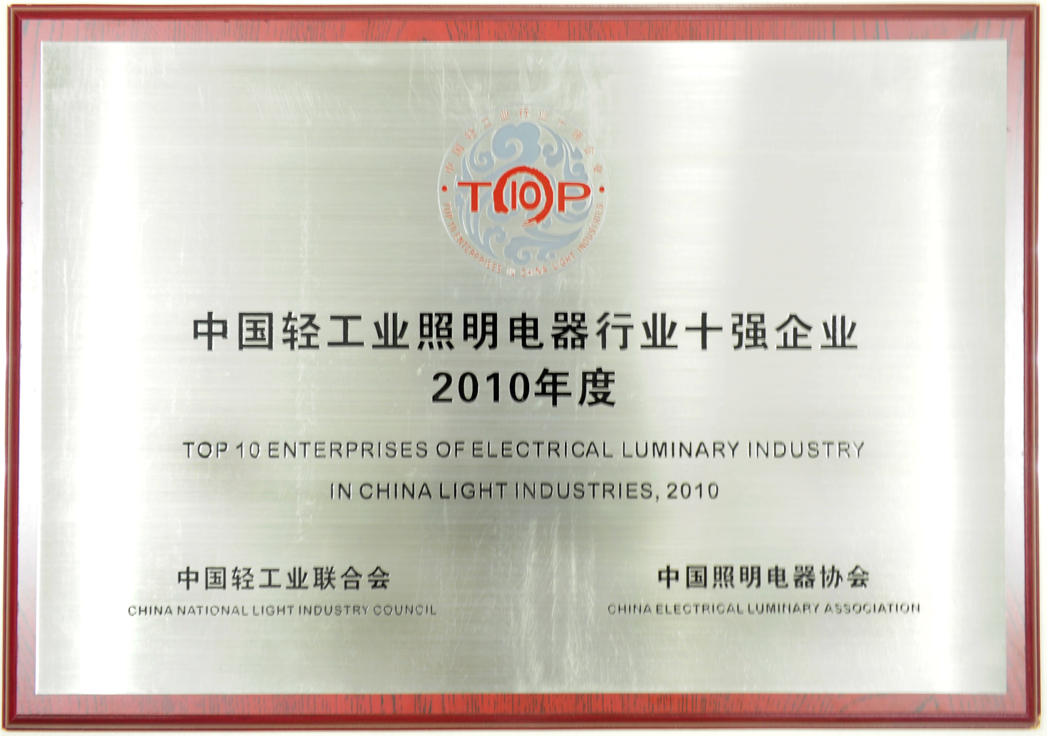 中國輕工業(yè)照明電器行業(yè)十強企業(yè) 2010年度