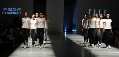 模特們身著印有“華誼兄弟公益基金”的T恤集體亮相,愛心滿滿