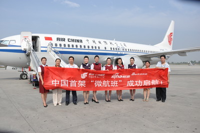 北京2011年7月1日電 /美通社亞洲/ -- 今日上午6:50,包括“月亮美女”黃奕在內(nèi)的百余名“微航客”乘坐由國航發(fā)起的中國首架“微航班”正式從北京啟航飛赴西安助威世界園藝博覽會。籌備了一個月之久,中國民航史上第一個“微航班”終于成功起飛。
