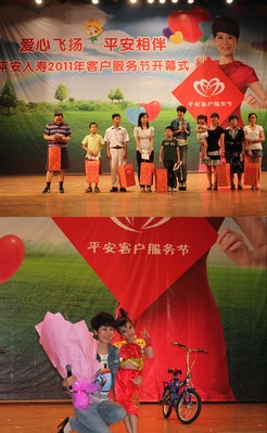 客戶服務(wù)節(jié)活動(dòng)已成為平安人壽一年一度的重要節(jié)日,韶關(guān)平安人壽客服節(jié)年年舉辦,年年創(chuàng)新,韶關(guān)的廣大客戶、市民參與度越來越高,客服節(jié)活動(dòng)形式越辦越大,影響力越來越廣。平安已將“感恩客戶,回饋社會(huì)”寫進(jìn)了企業(yè)文化,成為企業(yè)文化的重要組成部分。尤其是今年,平安還將愛心活動(dòng)不斷延伸,除了目前正在舉辦的少兒才藝大賽,平安還將推出少兒安全知識(shí)競賽、社區(qū)活動(dòng)、電影藝術(shù)欣賞等一系列活動(dòng)。中國平安多年來持續(xù)積極投身教育公益、紅十字公益等公益事業(yè),履行企業(yè)社會(huì)責(zé)任,特別是在全國各地修建希望小學(xué),而就在韶關(guān)的梅塘平安也修建的一座平安梅塘希望小學(xué),每年韶關(guān)平安人壽都會(huì)向這所平安希望小學(xué)捐贈(zèng)物資及舉辦多資多彩慰問的活動(dòng),為貧困地區(qū)的孩子們創(chuàng)造學(xué)習(xí)的機(jī)會(huì)及感受愛的關(guān)懷。