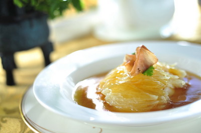君綽軒國慶煙花匯演套餐 B -- 君綽三小碟、金湯蟹肉大生翅、蒜蓉蒸開邊龍蝦、碧綠鮑脯扣鵝掌、香煎安格斯牛柳、上湯什菌津膽、蝦干肉碎有機(jī)紅糙米飯、楊枝甘露、水果拼盤。每位港幣888元。