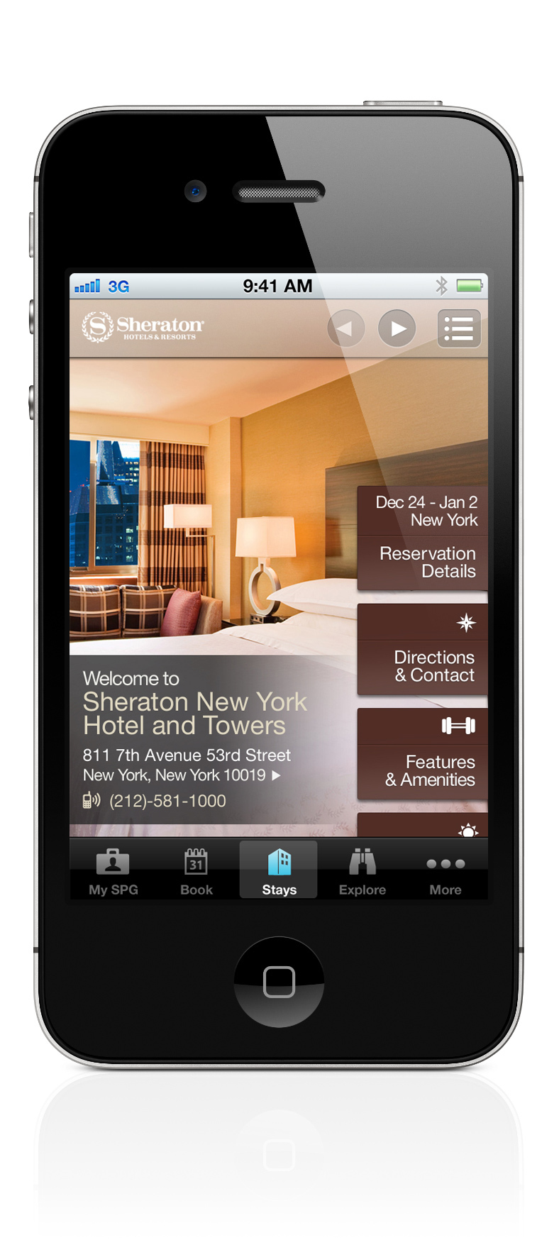 喜達屋酒店屢獲殊榮的忠誠計劃 -- SPG 俱樂部計劃推出全新移動應用程序,將喜達屋旗下近1100家酒店與度假村完美聯合起來;全新的應用程序可通過機場代號和地圖搜尋酒店,通過主畫面便可進入賬戶信息、住宿、客戶支持以及優惠等常見請求界面。