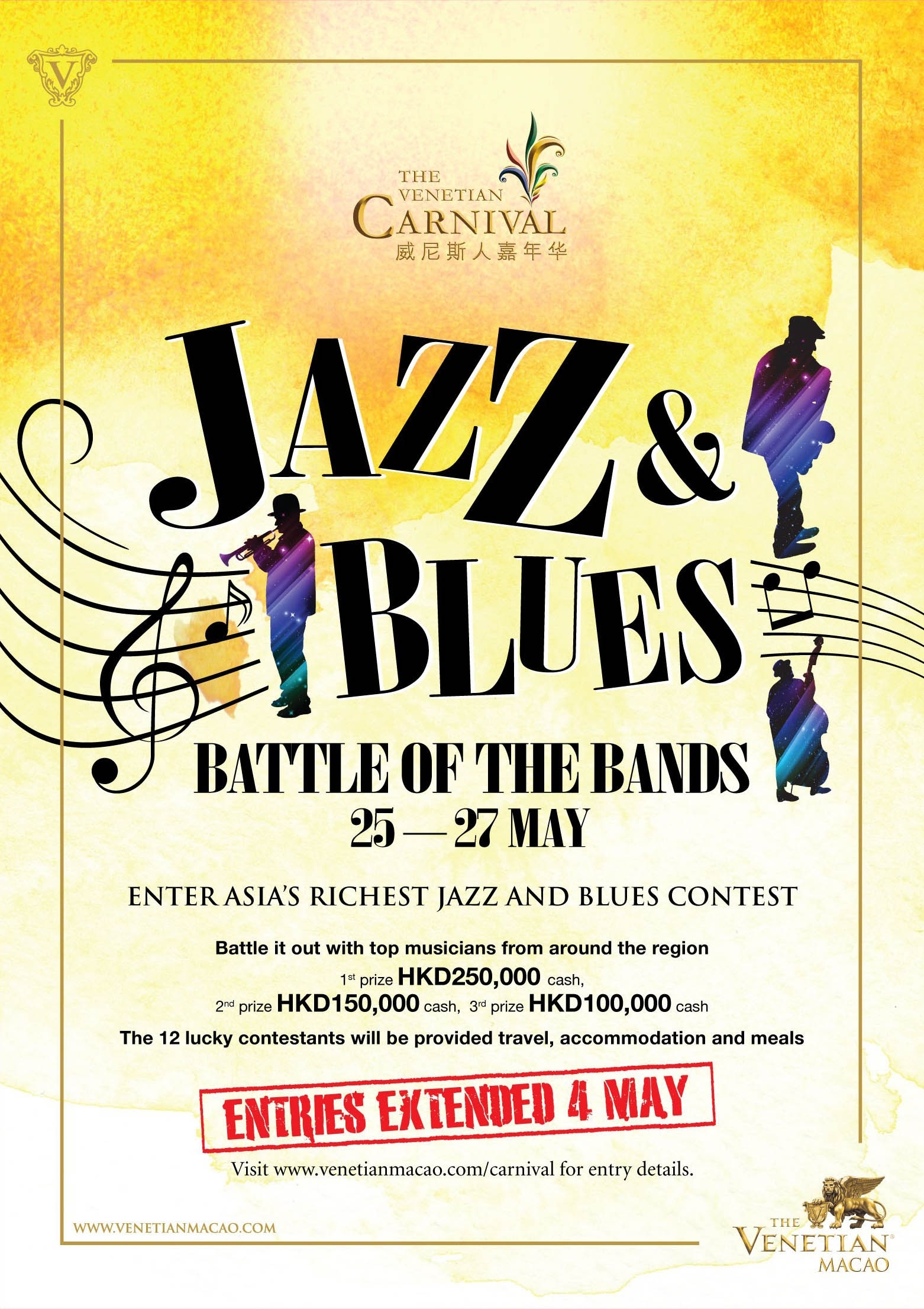 有關(guān)“爵士及藍調(diào)樂大比拼”的詳細資料及參賽辦法,請瀏覽 http://www.venetianmacao.com/carnival/,如欲緊貼最新活動消息,請瀏覽www.facebook.com/venetianmacao 或 http://weibo.com/venetianmacao。。