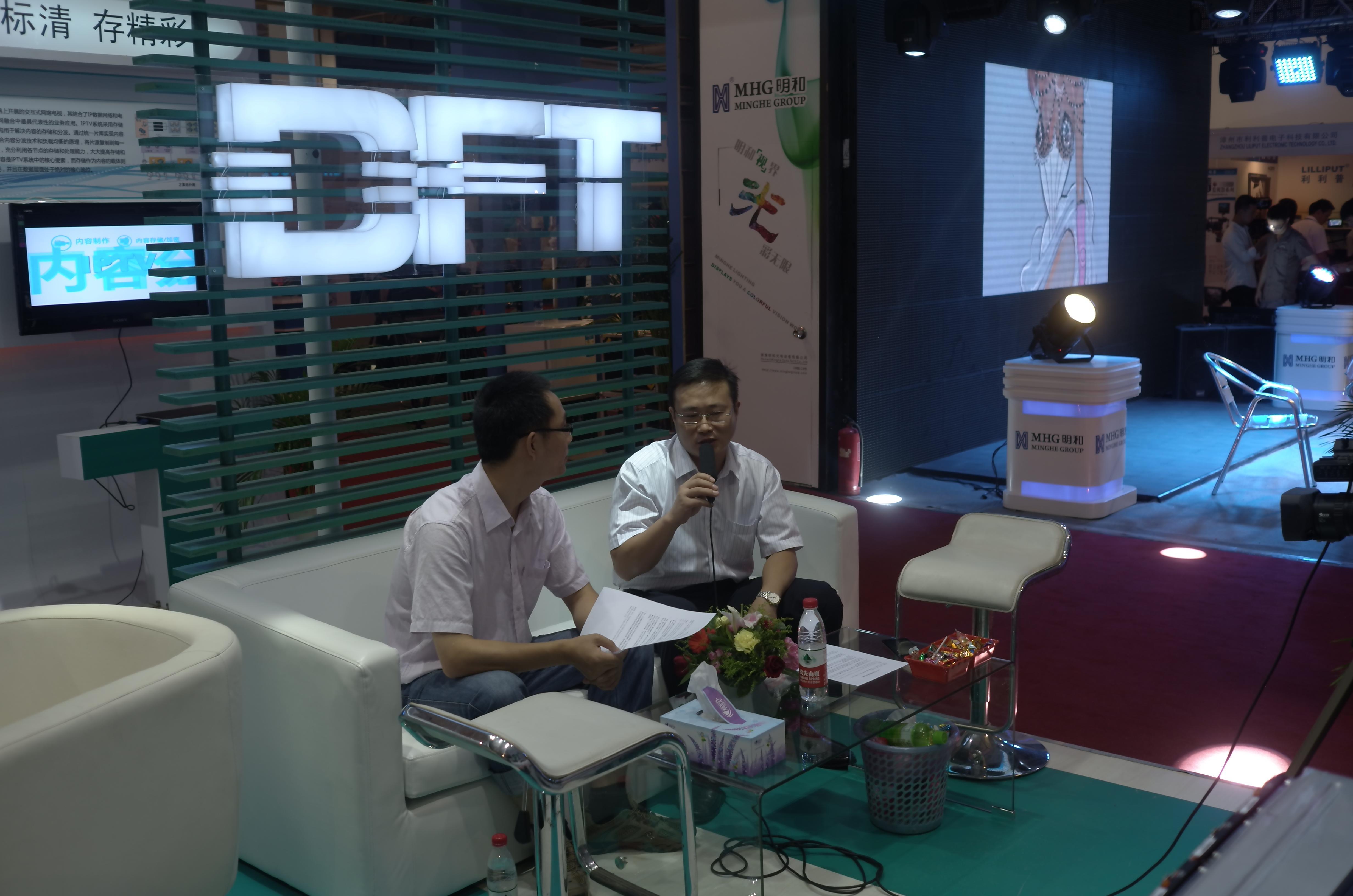 圖二:DFT總經(jīng)理劉衛(wèi)東先生(右)現(xiàn)場接受DOIT傳媒副總編兼存儲在線主編、渠道在線主編彭彥明先生(左)采訪