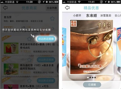 值得一提的是,丁丁優惠還將支持Passbook的“到店提醒”功能。用戶在完成收藏優惠券到Passbook的動作后,優惠券的地理位置信息也一樣被同步,一旦用戶到達所收藏優惠券商戶所在地附近時,Passbook的LBS功能將在鎖屏狀態下,溫馨地提醒用戶使用 -- 記得在消費時享受優惠。
