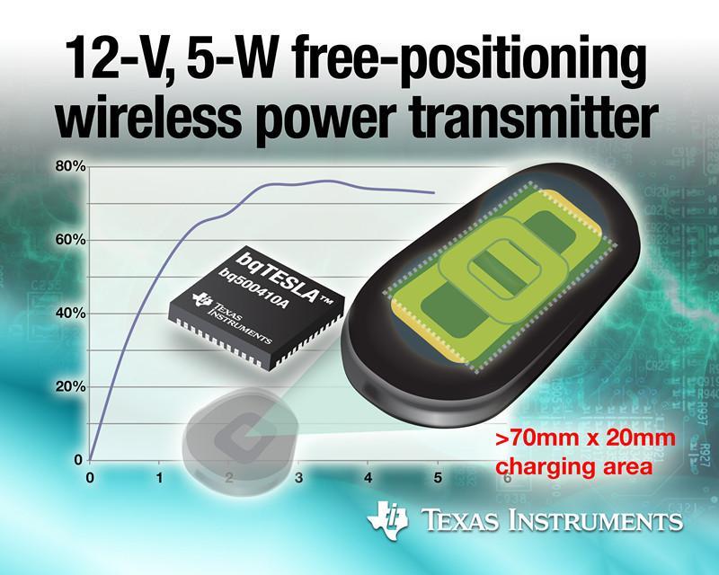 除接收器外,TI bq500410A 是首款符合 WPC 1.1 標準并支持 A6 發送器的無線電源傳輸控制器。該控制器有助于符合 Qi 標準的智能手機或其它便攜式設備在至少 70 毫米 x 20 毫米的表面面積上充電,與當前 18 毫米 x 18 毫米的“靶心式”充電面積相比,擴大了 400%。bq500410A 不但可實現超過 70% 的效率,而且還采用獨特寄生金屬及外來對象檢測特性為系統提供安全保護,如果在發送器和接收器之間檢測到金屬物質,就會停止輸電。