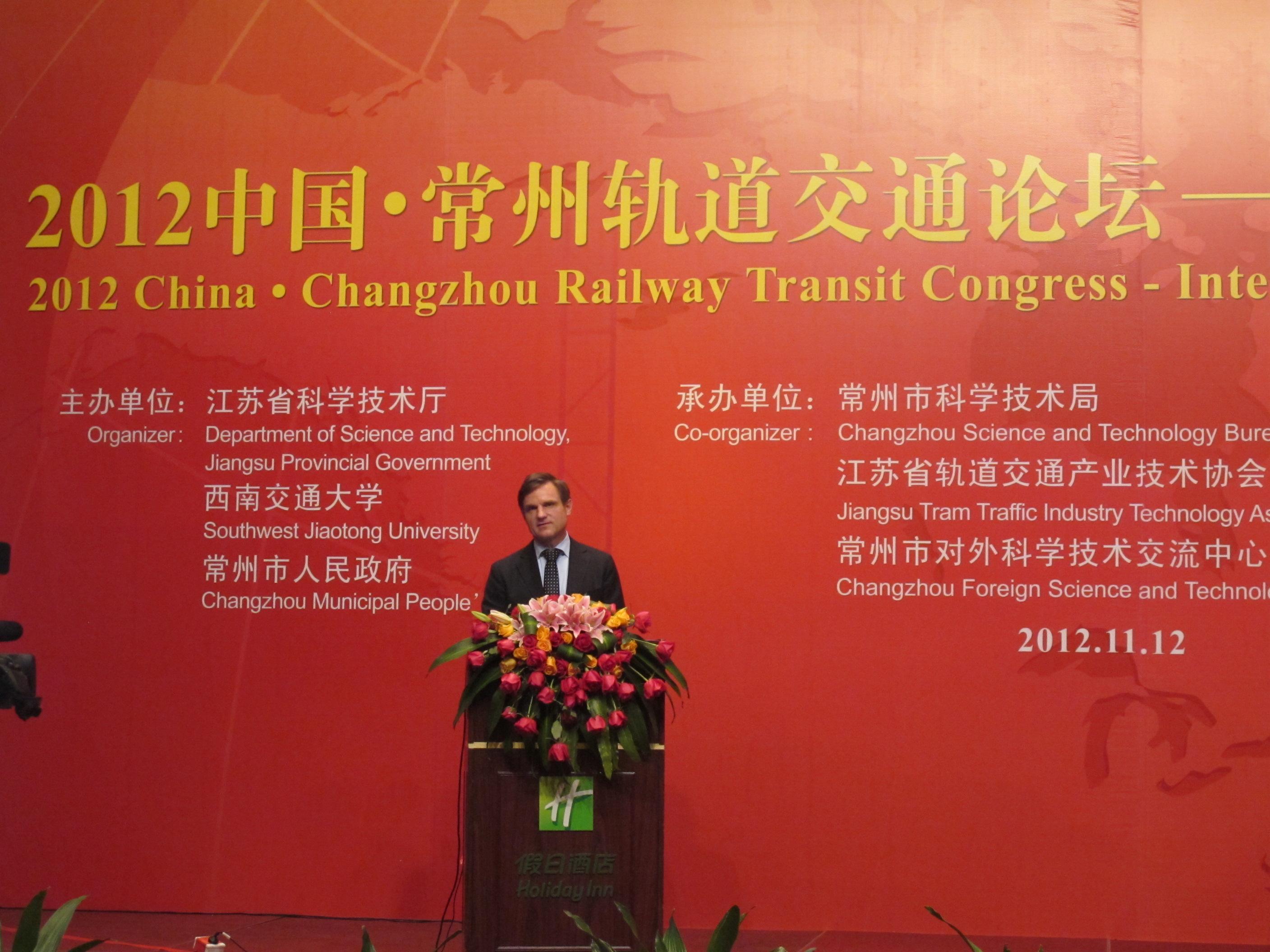 常州2012年11月20日電 /美通社/ -- 11月12日,2012常州國際軌道交通內飾大會在常州武進假日酒店隆重舉行。全球領先的技術服務提供商TUV南德意志大中華集團總裁兼CEO范華德先生(Mr. Dirk von Wahl)及高級副總裁、中區(qū)董事總經理金燦先生受邀出席,分享TUV 南德意志集團在軌道交通領域的技術與經驗,并分別發(fā)表主題演講。