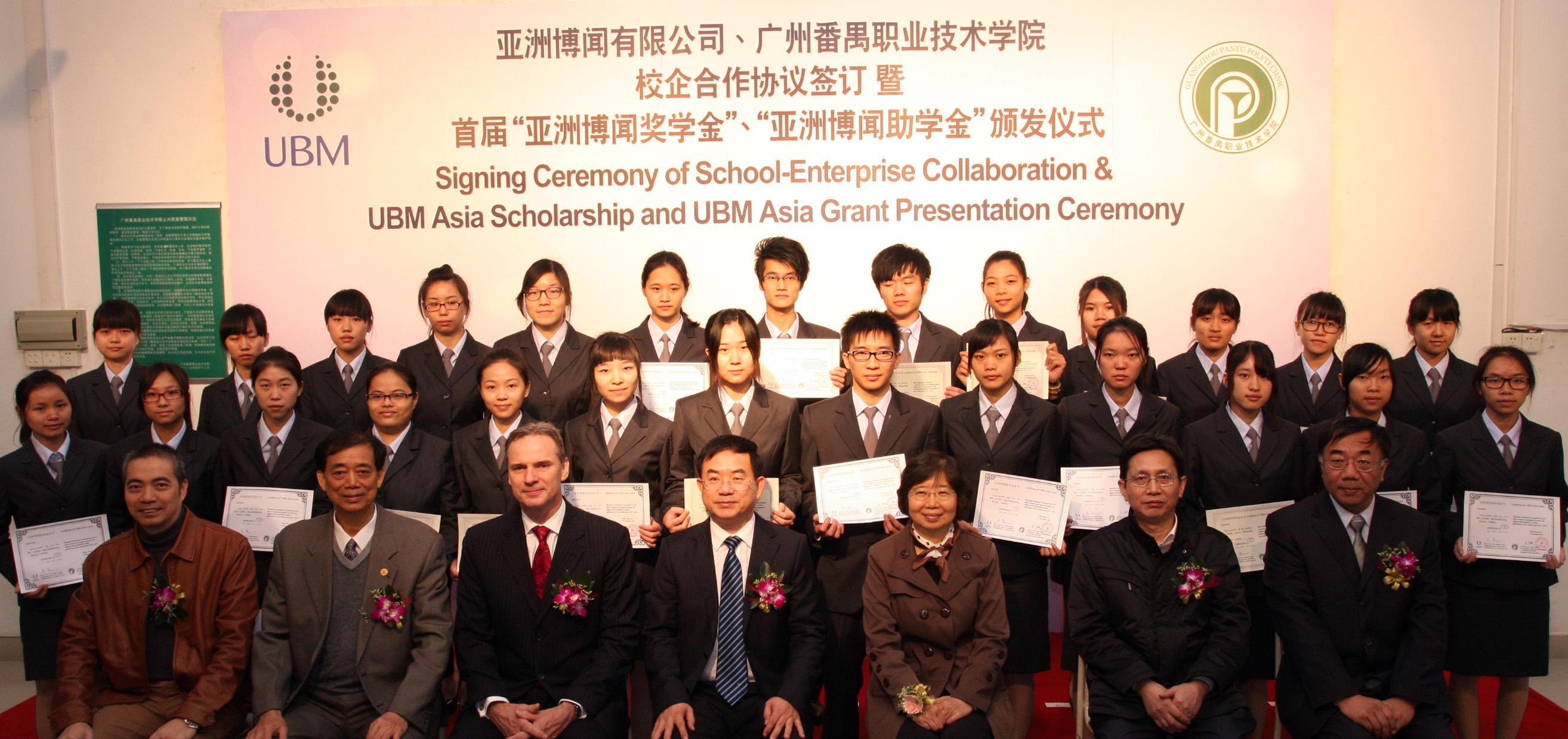 亞洲博聞在珠寶學院設立亞洲博聞獎學金五萬元人民幣及亞洲博聞助學金三萬元人民幣,并于每年舉行頒發儀式。首屆“亞洲博聞獎學金”由亞洲博聞高級副總裁狄沃夫先生、廣州市教育局巡視員王小強女士及廣州市對外經濟貿易合作局副巡視員李國榮先生頒發予十三位品學兼優的學生。而“亞洲博聞助學金”由廣州番禺職業技術學院黨委書記孟源北先生、廣州市教育局高教處處長邵國良先生及廣州市番禺區對外貿易經濟合作局局長黎志偉先生頒發助學金予十三位勤奮向學的貧困學生,幫助他們順利完成學業。