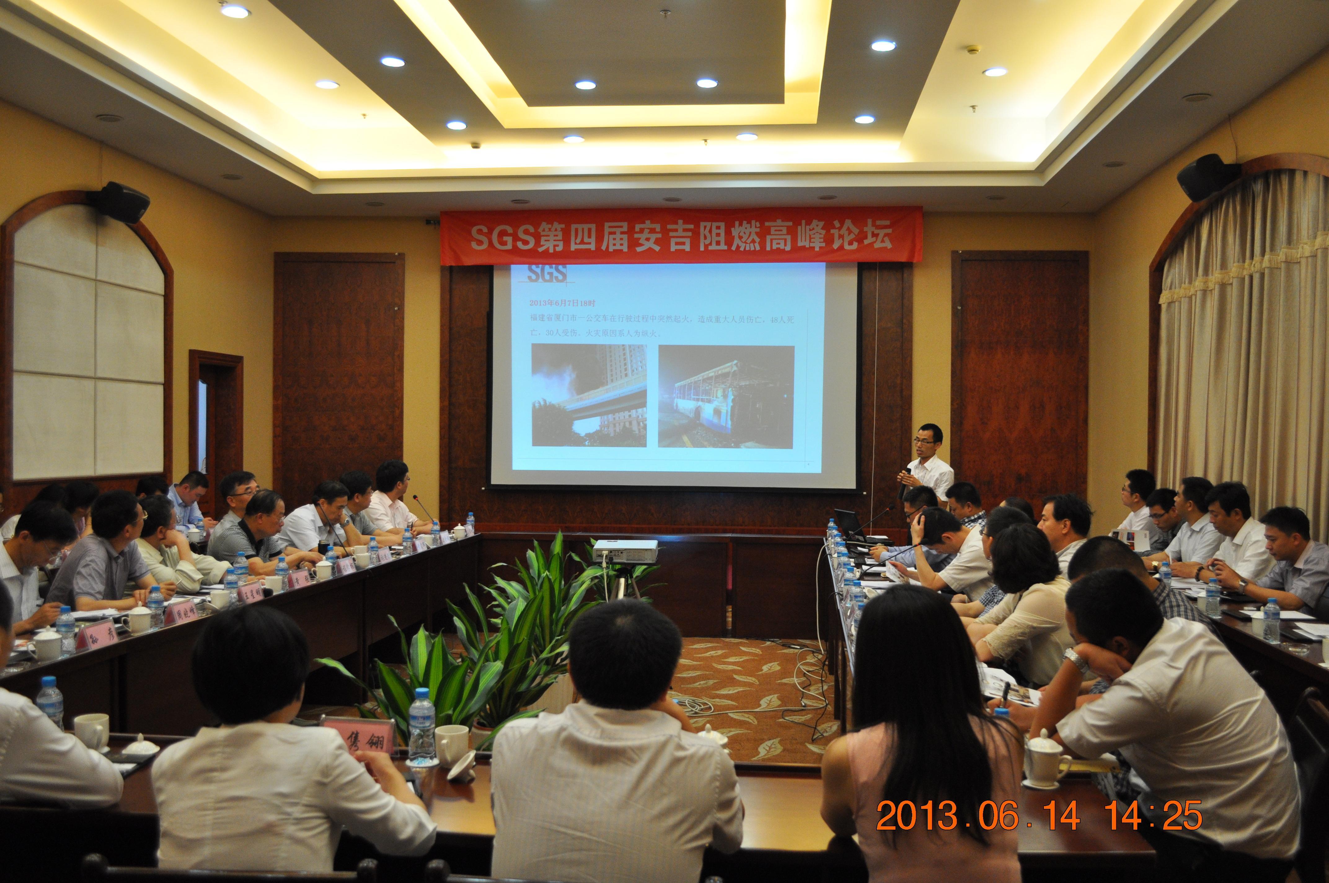 上海2013年6月24日電 /美通社/ -- 近日,第四屆阻燃高峰論壇在浙江安吉召開。此次活動由全球領先的第三方檢驗、鑒定、測試及認證機構SGS通標標準技術服務有限公司(下簡稱SGS)主辦,受邀出席的嘉賓有安吉縣副縣長錢洪文、中國北車集團副總工程師王星明、中國南車四方車輛廠質量部副總工程師曹志偉、鐵路總公司首席專家(全國政協委員)黃強、中鐵學會秘書長(原鐵道部貨車處處長)張進德、鐵路總公司動車聯合辦公室總驗收室主任程學樞、鐵科院高級研究員周曉峰等防火阻燃界專家。此次活動旨在通過對建筑及軌道交通阻燃安全最新法規的解讀,共同探討建筑及軌道交通火災安全的解決之道,加強火災風險評估及預防措施,從而降低火災造成的損失。
