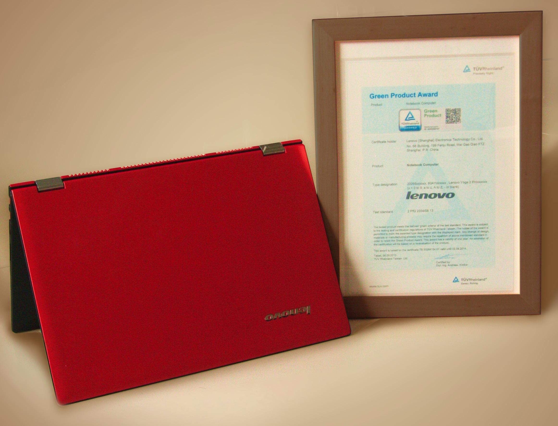 德國萊茵TUV的綠色標志是一個產品經綜合測試項目下的評估結果。常見的國際環保標準包含能源效率、WEEE、產品碳足跡、回收材質驗證、避免化學有害物質等國際法規。此次Yoga 2 Pro筆記本在產品能效、避免化學有害物質及碳足跡方面經受了德國萊茵TUV專業檢測的重重考核,尤其在產品碳足跡方面表現優異,以非常低的碳排放領先筆記本環保指標。