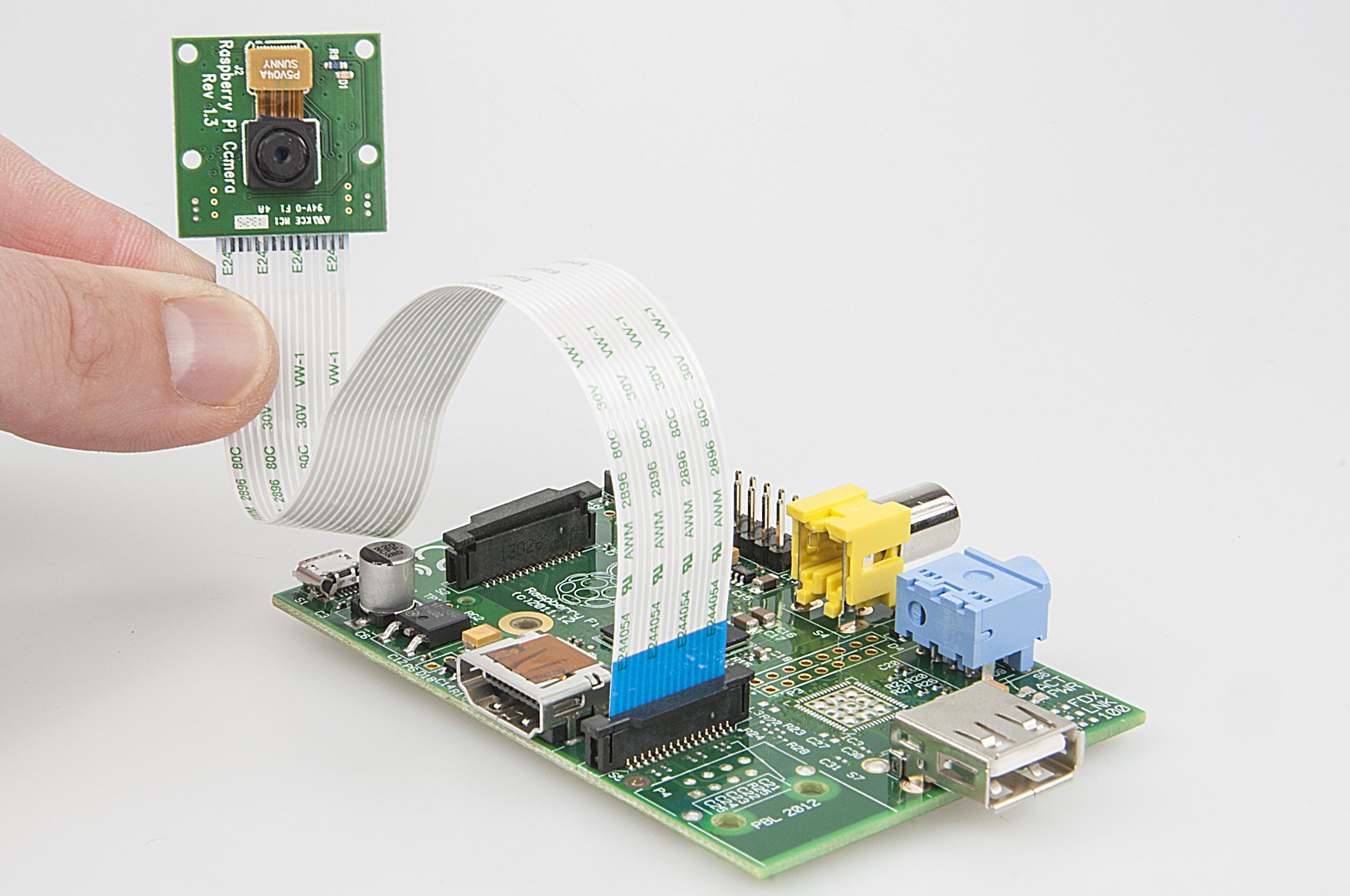 樹莓派A型板為矮版,信用卡大小,含256MB RAM、一個(gè)USB端口,無以太網(wǎng)連接。相機(jī)模塊僅有25mm x 20mm x 9mm大小,重量略大于3克,包含一個(gè)500萬像素CMOS傳感器,能夠拍攝2592 x 1944像素的靜態(tài)圖像,同時(shí)支持1080p(30fps)、720p(60fps)和640x480p(60或90fps)視頻拍攝。相機(jī)模塊通過一條短排線連接到樹莓派A型板,并采用CSI和I2C進(jìn)行控制。